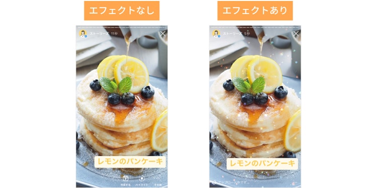 「エフェクト」は、ストーリーズに投稿する写真や動画にビジュアル効果を付けられる機能です。