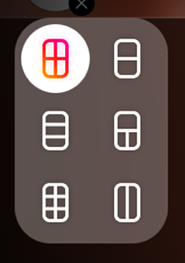 グリッドの種類を選択できるようになるので、作りたい構図のグリッドを選択します。編集可能なグリッドのみが撮影モードになるので、撮影ボタンをタップして撮影をするか、左下のアイコンから自分のスマホ内にある画像を選んでください。