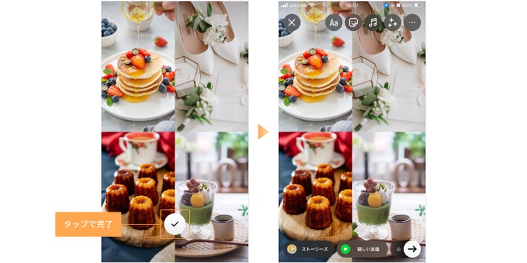 好きなパターンを選んだ後、お好みに合わせて加工し、ストーリーズに投稿しましょう。 加工の方法については、テクニック2・テクニック3で詳しく解説します。