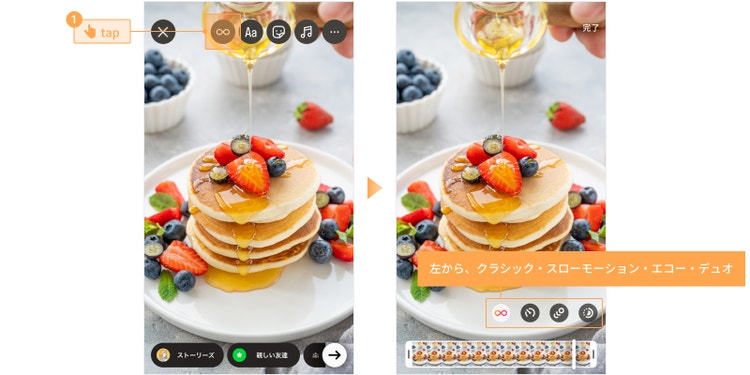 画像をタップ後、適用したいブーメランの種類を選択し、ストーリーズに投稿できます。