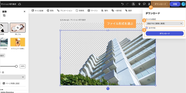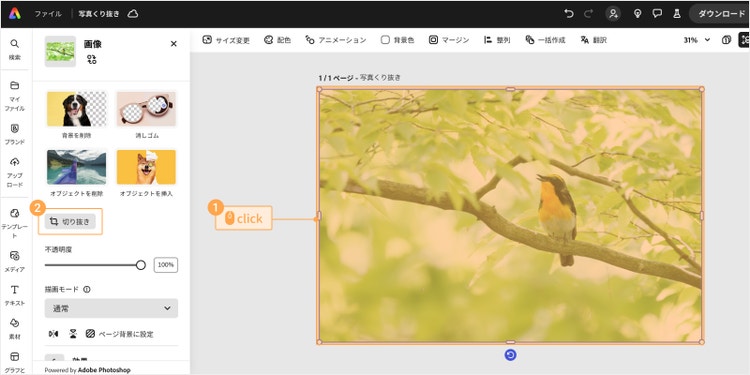 続いて、Adobe Expressを使って切り抜く箇所を調整する方法を解説します。
