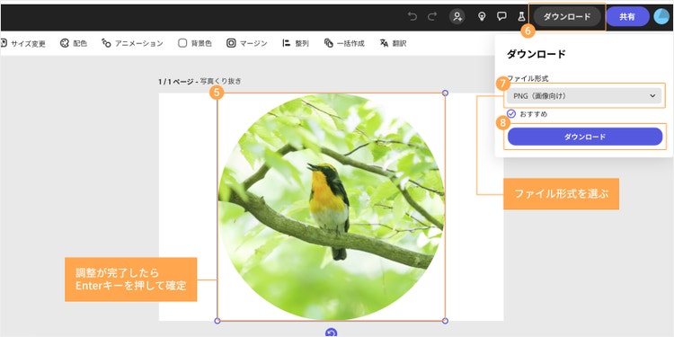 調整が完了したらEnterキーを押して確定し、画面右上の「ダウンロード」をクリックして画像を保存しましょう。