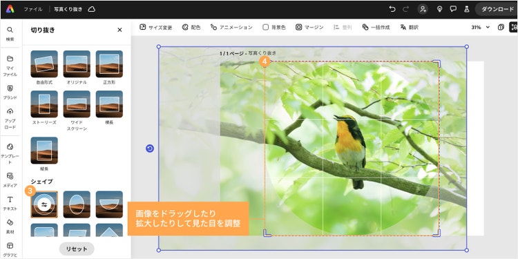 【手順3】画像の位置を調整し、ダウンロードする