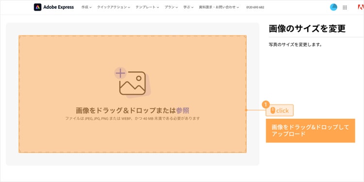 Adobe Expressなら以下のページにアクセスして画像をアップロードし、サイズを指定するだけで希望のサイズにトリミングできます。