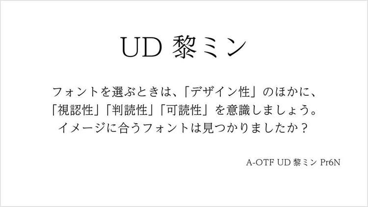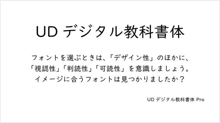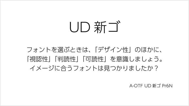 なかでも、誰にとっても見やすく、読みやすい文字を目指して開発された「UDフォント(ユニバーサルデザイン)」は、視認性、判読性、可読性が高くなるようにデザインされています。