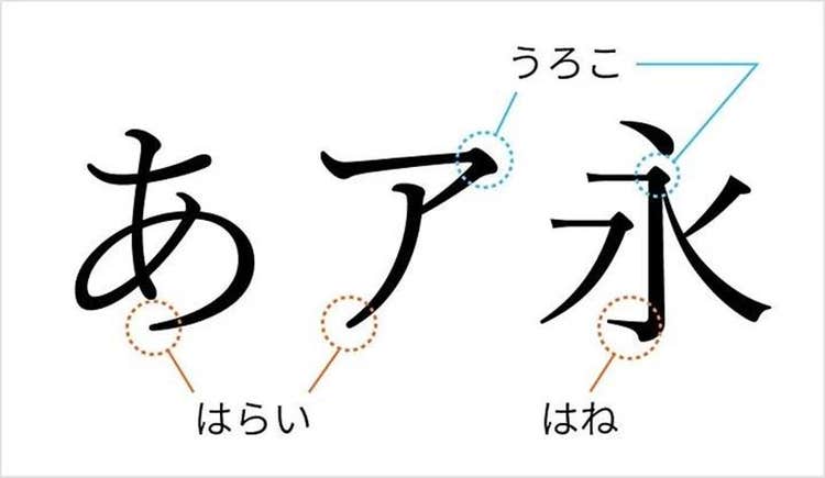 明朝体は、「はね」や「はらい」などの線幅に強弱が見られたり、横線の右端に「うろこ」と呼ばれる装飾が付いていたりといった特徴のある日本語書体です。