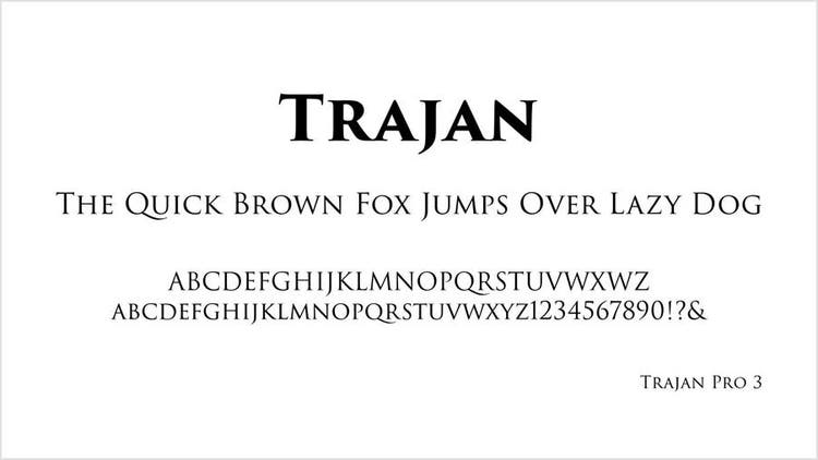 「Trajan」は、1世紀にイタリアのローマに建立された「トラヤヌスの記念碑」に刻まれた文字を、ほぼ忠実に再現したセリフ体です。