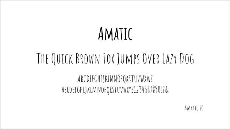 手書きの温かみを感じさせる「Amatic」は、視覚的な興味を惹きつけるだけでなく、可読性にも優れています。