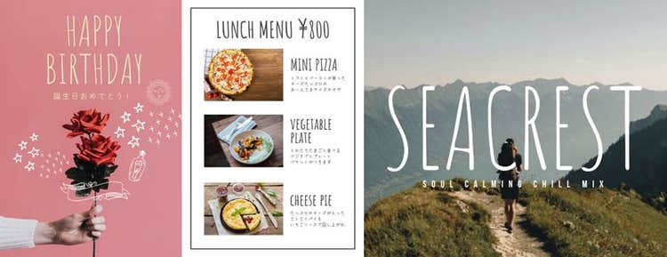 フォントによって、読みやすさやフォントが与える印象は様々です。作りたいイメージや目的に合ったフォントを使うことで、デザインで伝えたい印象をより適切に伝えられます。