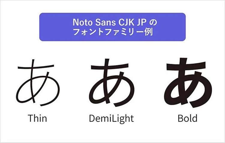 見出しと本文の太さを変えたいなど、文字の太さに変化をつける制作物を作りたい場合は、フォントファミリーが豊富なフォントを選ぶのがオススメです。