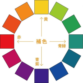 ポスターを作るときには、配色にも気をつけましょう。配色について考えるときに便利なのが、「色の法則」です。統一感を出すなら同系色でまとめ、逆にメリハリを出すなら補色を使います。補色とは、以下の図のように、色相環の反対側に位置する色のことです。