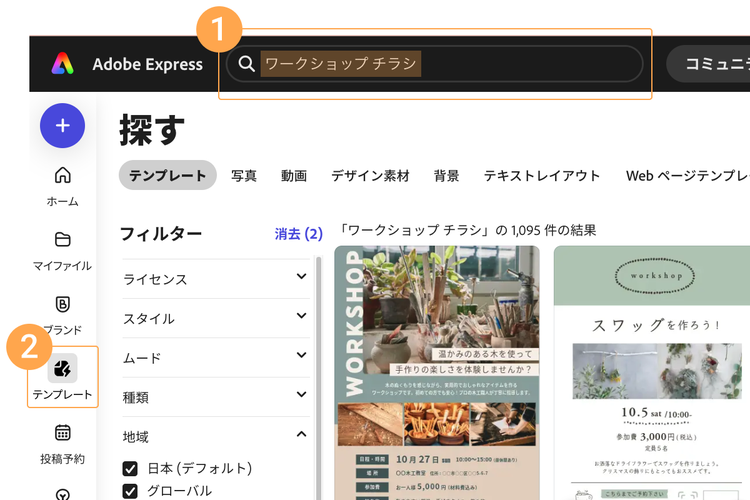 Adobe Expressのテンプレートを使って、ワークショップのチラシをデザインしてみましょう。