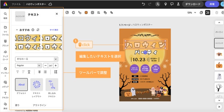Adobe Expressでハロウィンのテンプレートを使ってデザインする方法