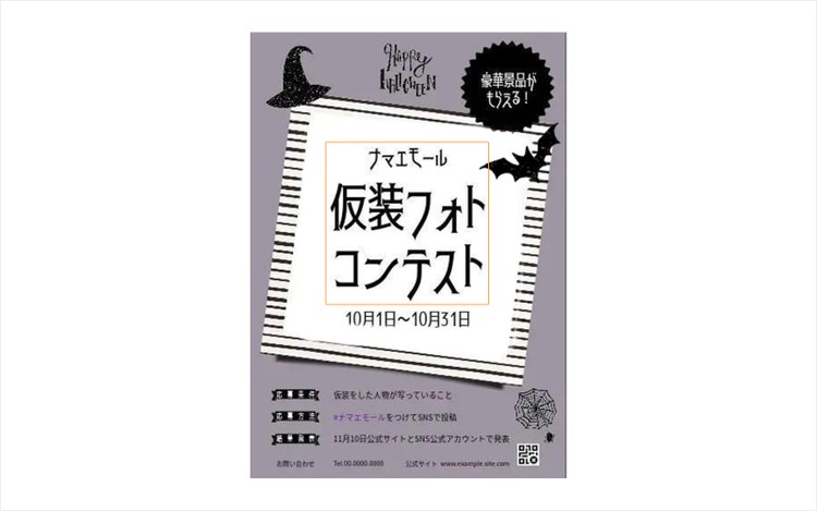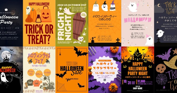 ハロウィンは、子どもも大人も楽しめる一大イベントです。仮装パーティーやハロウィンキャンペーンのチラシ・ポスター、仮装姿のSNS投稿などをハロウィンの雰囲気たっぷりにデザインし、みんなでハロウィンを盛り上げましょう。