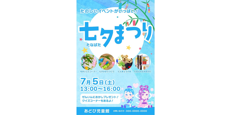今回は例として「児童館の七夕祭り」をテーマに、テンプレートを使ってポスターを作成する手順を解説します。