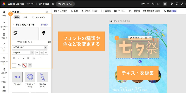 七夕のデザインを手軽に作りたい方には、無料で使える「Adobe Express」がオススメです。