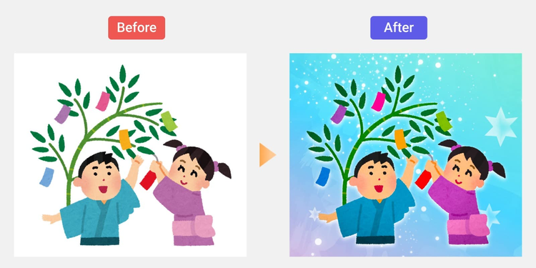 イラストとテンプレートを組み合わせて編集するだけで、あっという間に七夕らしいデザインが完成。ぜひ試してみましょう。