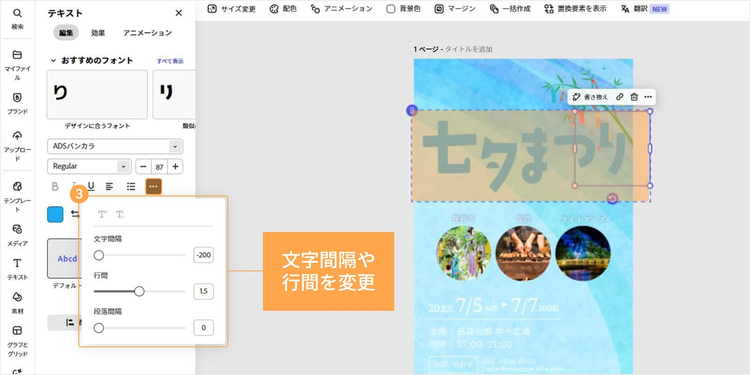 次の章では、Adobe Expressを使って七夕祭りのポスターを作成する手順をご紹介します。