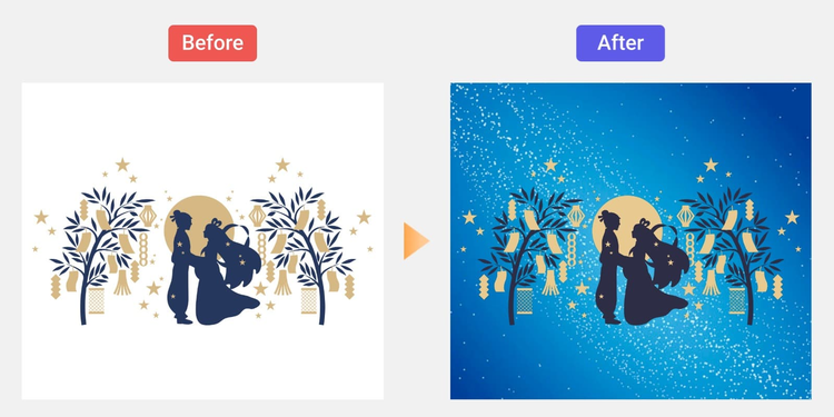 例えば、プラネタリウムのプログラムやカップル向けイベントには、繊細なタッチの織姫と彦星のイラストを取り入れると、幻想的でロマンチックな雰囲気に。