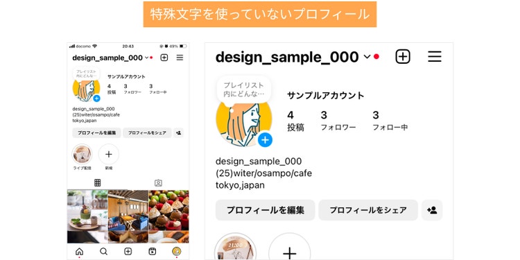 特殊文字を使うことで、あなたのInstagramのプロフィールや投稿は一気にオシャレになります。例えば、以下は特殊文字を使っていないプロフィールです。