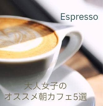 「Espresso」の部分には「Adobe Handwriting」というフォント、「大人女子のオススメ朝カフェ5選」の部分には「トレイン One Regular」というフォントを使用しています。