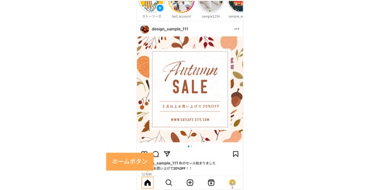 フィードとは、画面の一番左にあるホームのアイコンをタップしたときに表示される画面で、ユーザーが投稿した写真と文章が表示されるタイムラインのことです。リールは、リールタブだけでなくフィードにも投稿できます。