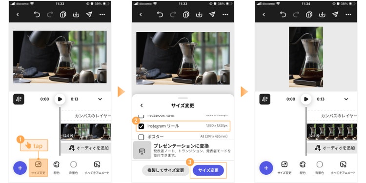 【手順3】動画の表示サイズをリール用に変更する