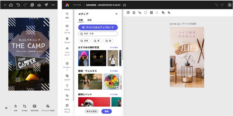 「Adobe Express」は、動画や画像をカンタンに編集できるツールです。ブラウザ版とアプリ版があるので、PCとスマホのどちらからでも利用できます。