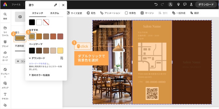 続いて、テンプレートを使ってリーフレットを自分でデザインする手順をご紹介します。