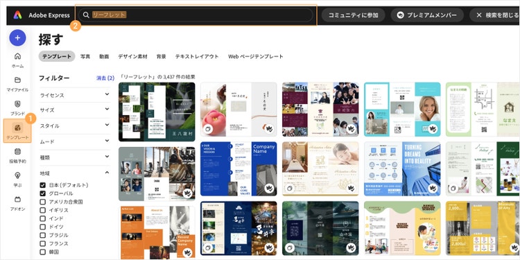 そのため、必要に応じて柔軟にリーフレットを作りたい場合は、自分でデザインするのがオススメです。 無料のデザイン作成ツール「Adobe Express」を使えば、プロのデザイナーが作ったテンプレートを使って、画像やテキストを差し替えるだけでカンタンにリーフレットを作れます。