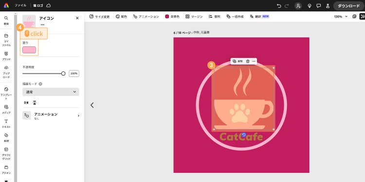背景色を変更したらモチーフを編集してみましょう。