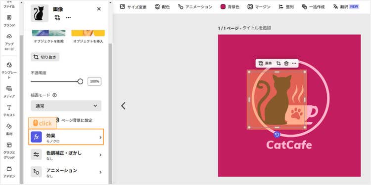 素材の色を変更するときは「効果」から色の設定ができます。