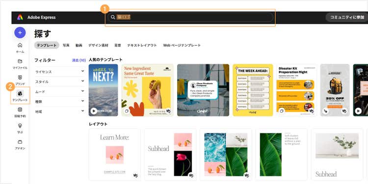 ここからは、Adobe Expressのテンプレートを使って実際にロゴを作る手順を解説します。
