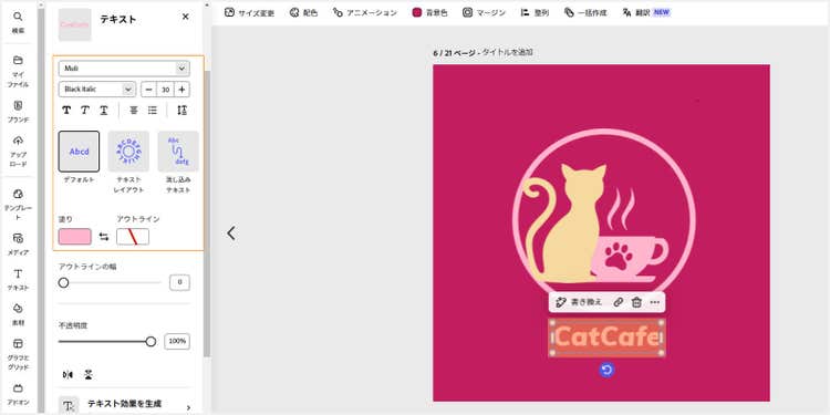 また、フォントや色、サイズも変更可能です。お店やサービスの雰囲気に合ったテキストデザインに調整してみましょう。
