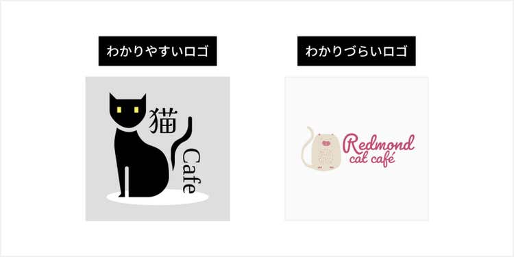 左のロゴは一目で猫であることがわかり、文字の視認性も高くなっています。一方、右のロゴは猫のデザインであることがわかりづらく、文字の視認性や判読性もよくありません。