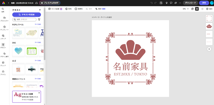 プロが作成したテンプレートが豊富に用意されているので、デザインに慣れていない方でもテンプレートを編集するだけでカンタンにロゴを作れます。