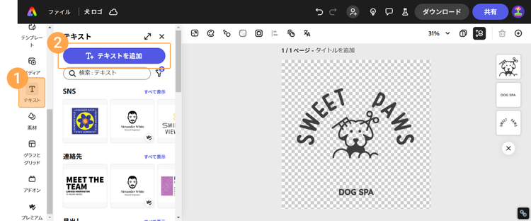 今回はこちらのテンプレートを編集し、ドッグスパのロゴを作成します。