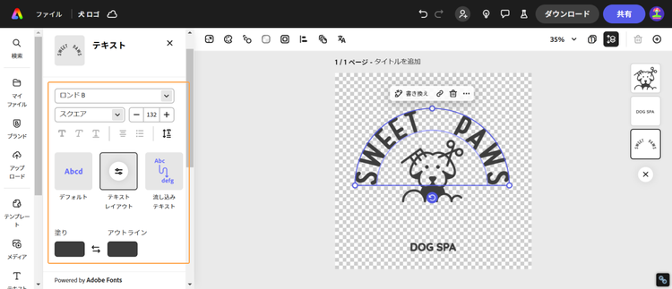 完成した犬のロゴの活用にもAdobe Expressが便利