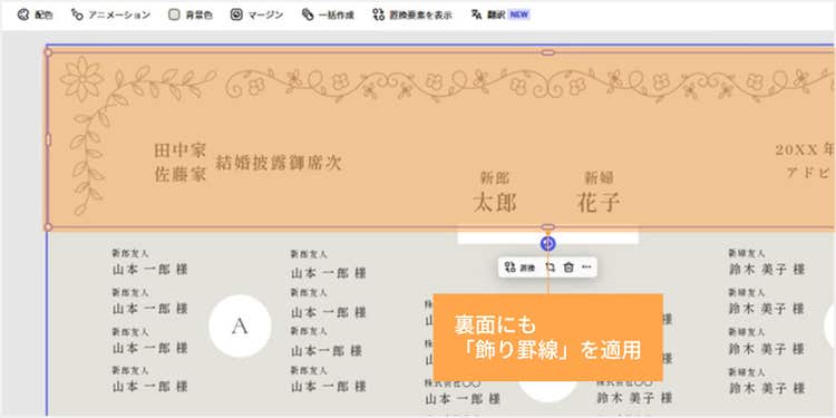 なお、裏面で使用している素材は、表面に入れたものと同じ飾り罫線の別のパーツを使用しています。