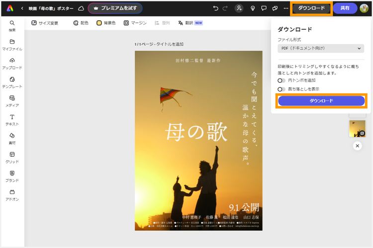 【手順4】完成したポスターのダウンロード