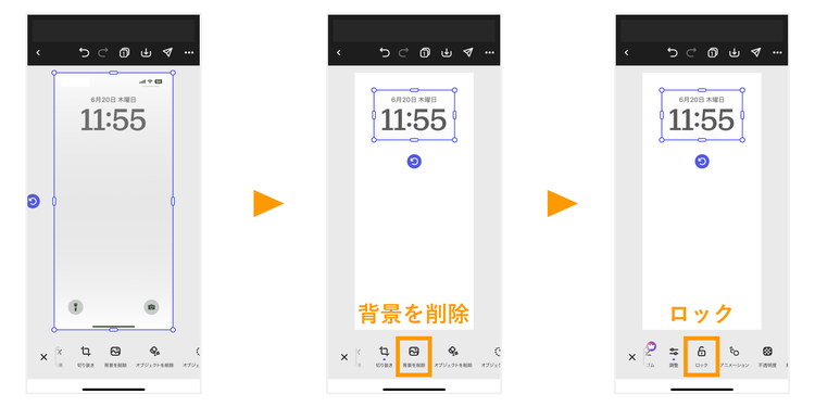 【手順3】ロック画面のスクリーンショットをカンバスに配置