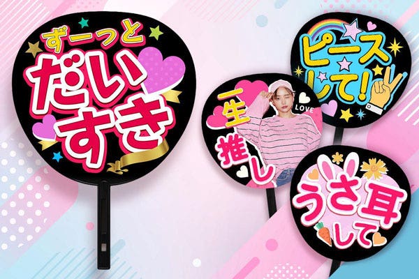 以下のように無料の素材やフォントだけを使って推し活うちわをデザインすることも可能です。