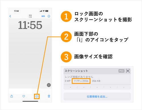 以下でiPhone・Android別にスクリーンショットを使った画面サイズの確認方法を説明します。なお、ここで撮影したスクリーンショットは【手順3】でも使用しますので、消さないように残しておいてくださいね。