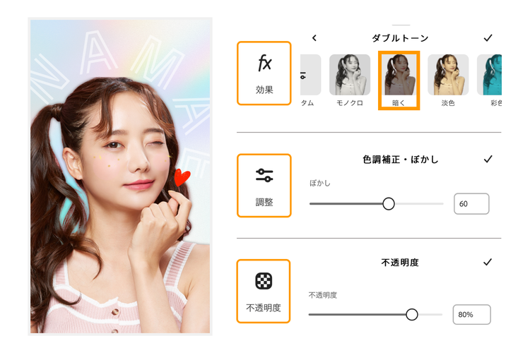 選び、 ぼかし具合を 自由に 調整する - 好みの