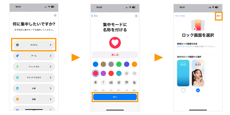 カスタマイズ」で ロック画面を 選択し「完了」 - 「推し活」の