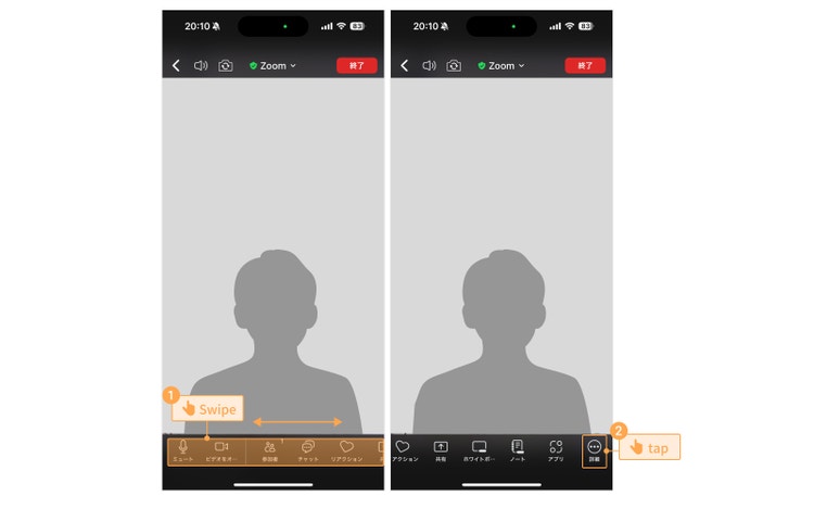 Zoom会議に参加したら、画面下部に表示されている「詳細」をタップしてください。