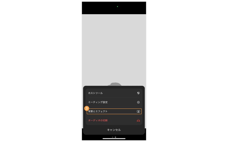 スマホの場合、背景画像は会議中にしか設定できません。ただし、一度変更した画面は次回以降のミーティングにも引き継がれるので、あらかじめ自分だけが参加するミーティングを起動し、背景画像を選んだ状態にしておくとよいでしょう。なお、iPhoneでもAndroidでも同じ手順で設定できます。
