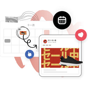 SNSアカウントとSNSカレンダーを連携させ、予約投稿の機能を使って効率よく運用しましょう。