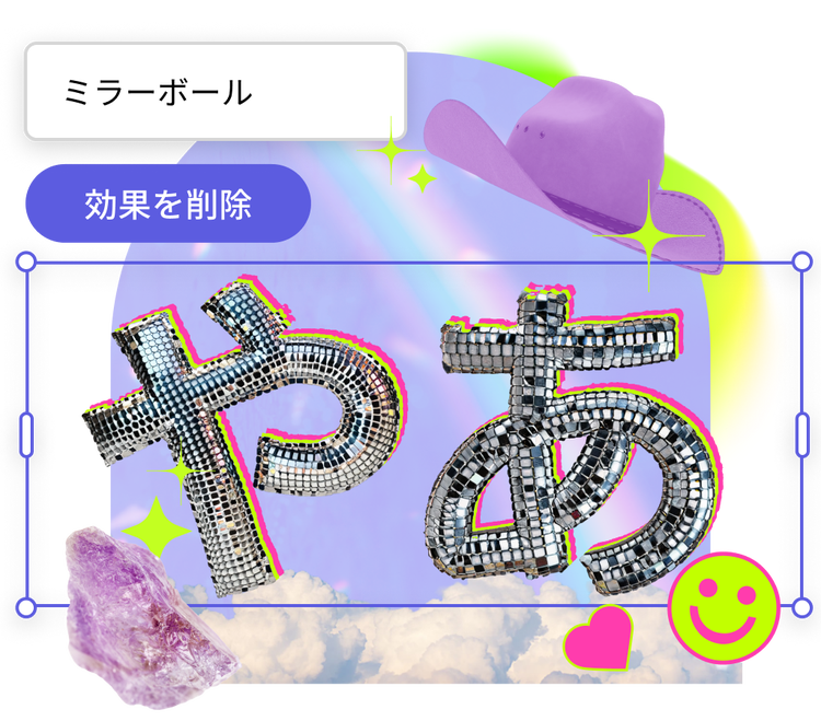 テキストを際立たせて視線を集めましょう。テキスト効果を生成するたびに4種類の結果が表示されます。様々なバージョンを使ってデザインを試せます。テキスト効果生成ツールを使えば、個性的なスタイルやオリジナルのテキストテクスチャを使って、伝えたい雰囲気、シーン、メッセージを思いどおりに表現できます。