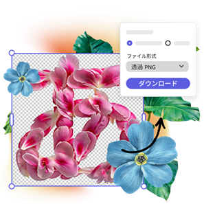 テキスト効果をすばやく生成できれば、アイデアをより短い時間で形にできます。アドビの生成AIを使用すれば、金色に輝くフォントや花びらで作られたイニシャルなど、アイデア次第であらゆるものを作成できます。完成したデザインを、色付きまたは透明な背景のJPEGとして保存して、いろいろな用途に活用しましょう。